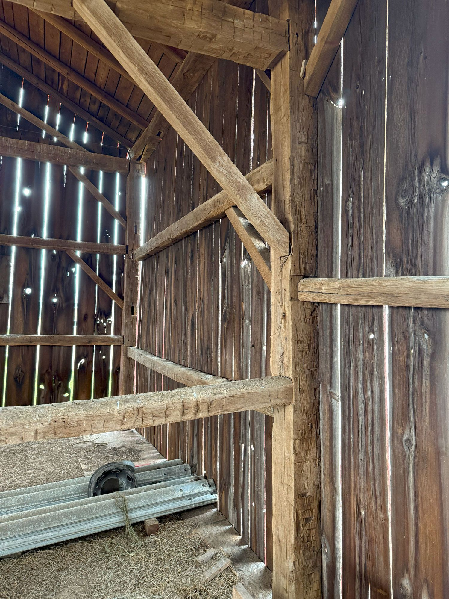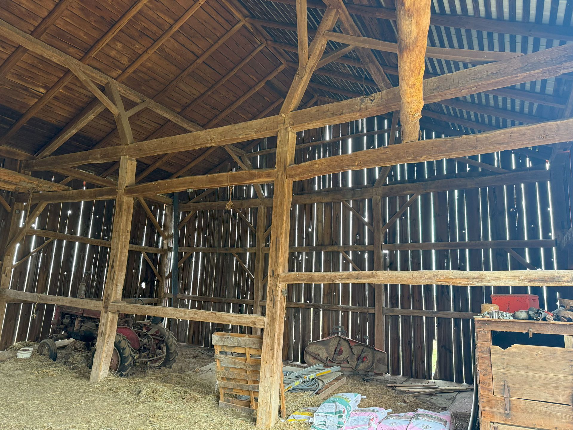 This two-story barn is a unique and structurally imposing antique building from Thomasville, Pennsylvania, named after the first Postmaster, George B. Thomas. This barn is likely from the time of the town's founding, revealing the exceptional craftsmanship of the late 19th century. Our assessment of the outstanding structure has confirmed its remarkable condition, requiring no replacement parts for re-erection. Its spacious interior is defined by towering timbers and ample natural light. This antique heritage barn offers endless possibilities for renovation. Whether transformed into a commercial space or a private residence, this barn has the potential to seamlessly blend historic character with modern comfort. With its stunning antique timber frame and potential for exposed beam ceilings, this historic barn is an extraordinary find for discerning buyers seeking unique and authentic architecture.