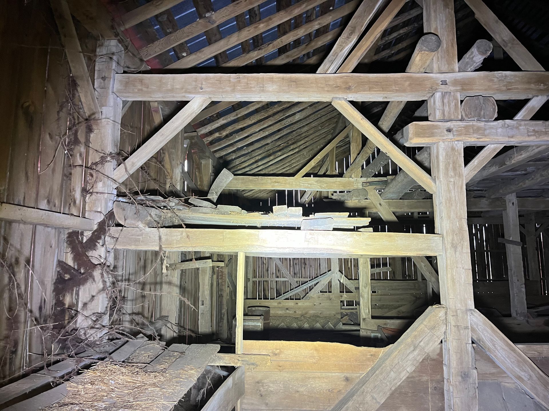 Its robust construction, featuring hand-hewn oak timbers and a classic four-bent, three-bay design, offers a solid foundation for architectural transformation. The barn has a spacious interior with towering ceilings and exposed timber framing. With its impressive scale and well-preserved structure, this barn has the potential to showcase its rich historic character in the form of a home reconstruction, multi-function venue, or event space.