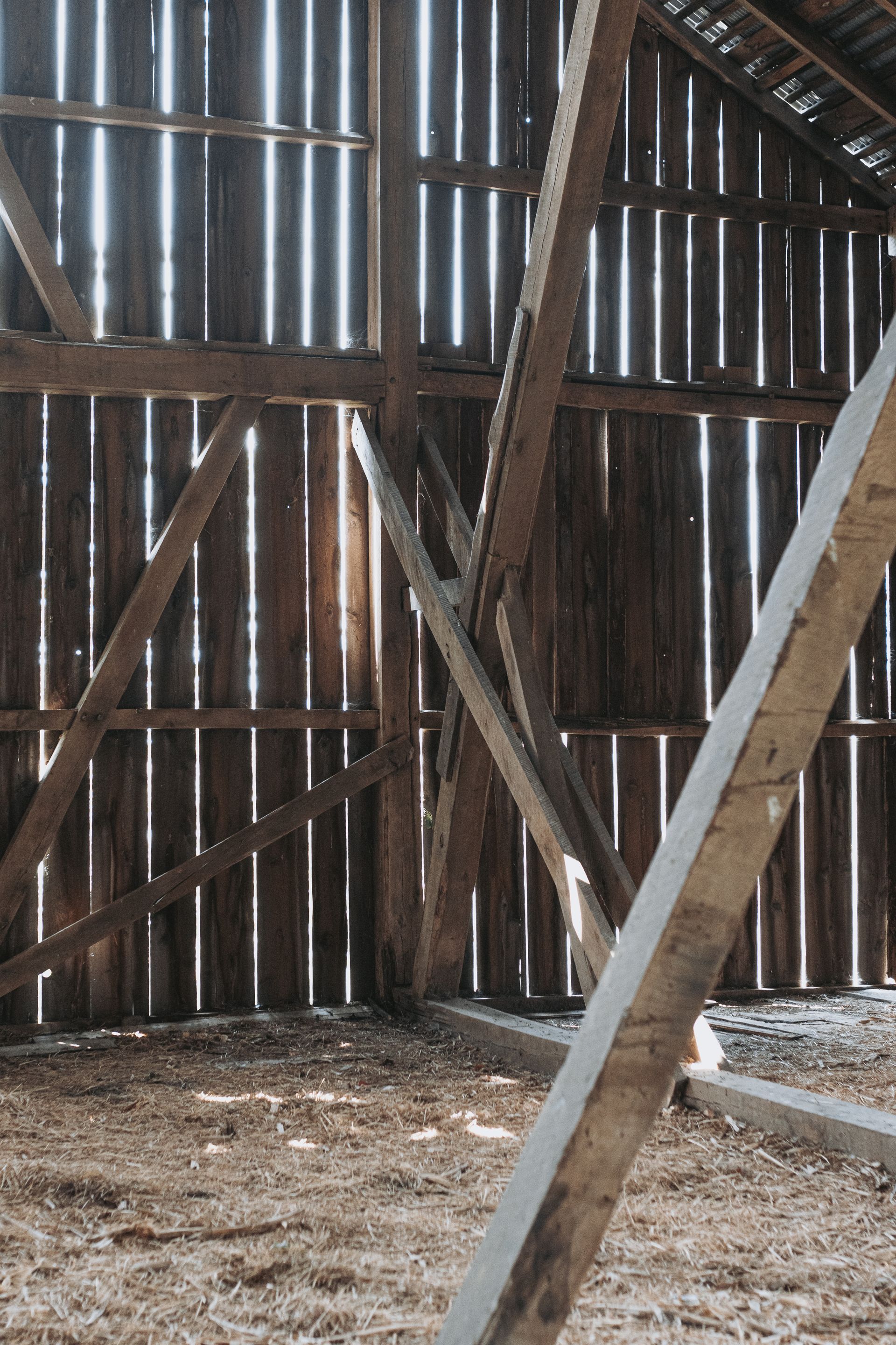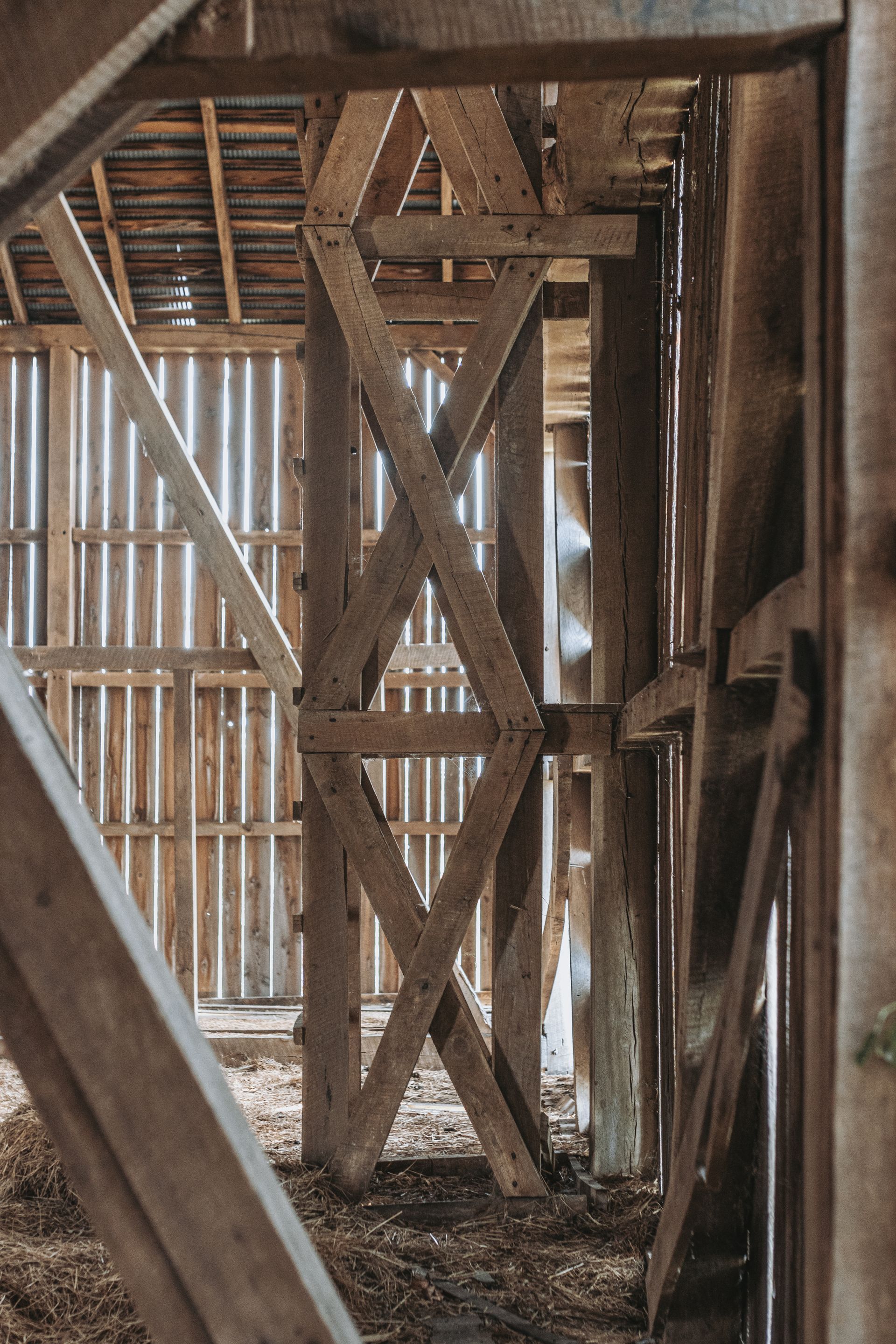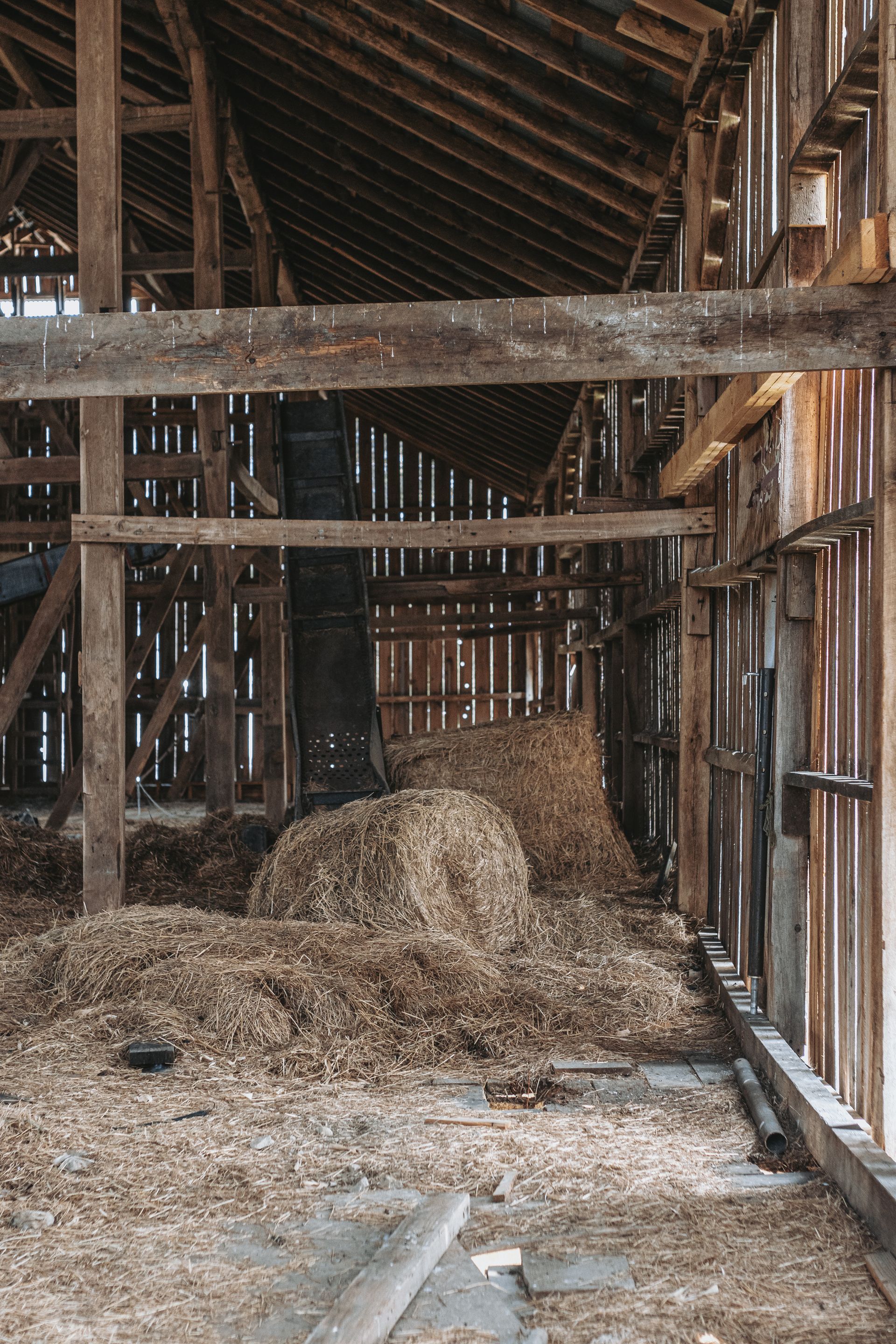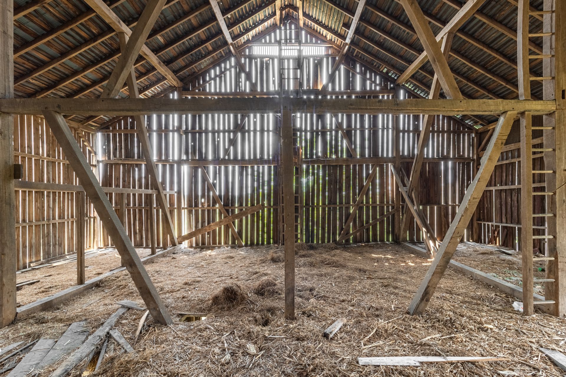 Long beautiful frame. 11-foot off bays make a monitor barn an option. Large wind braces.