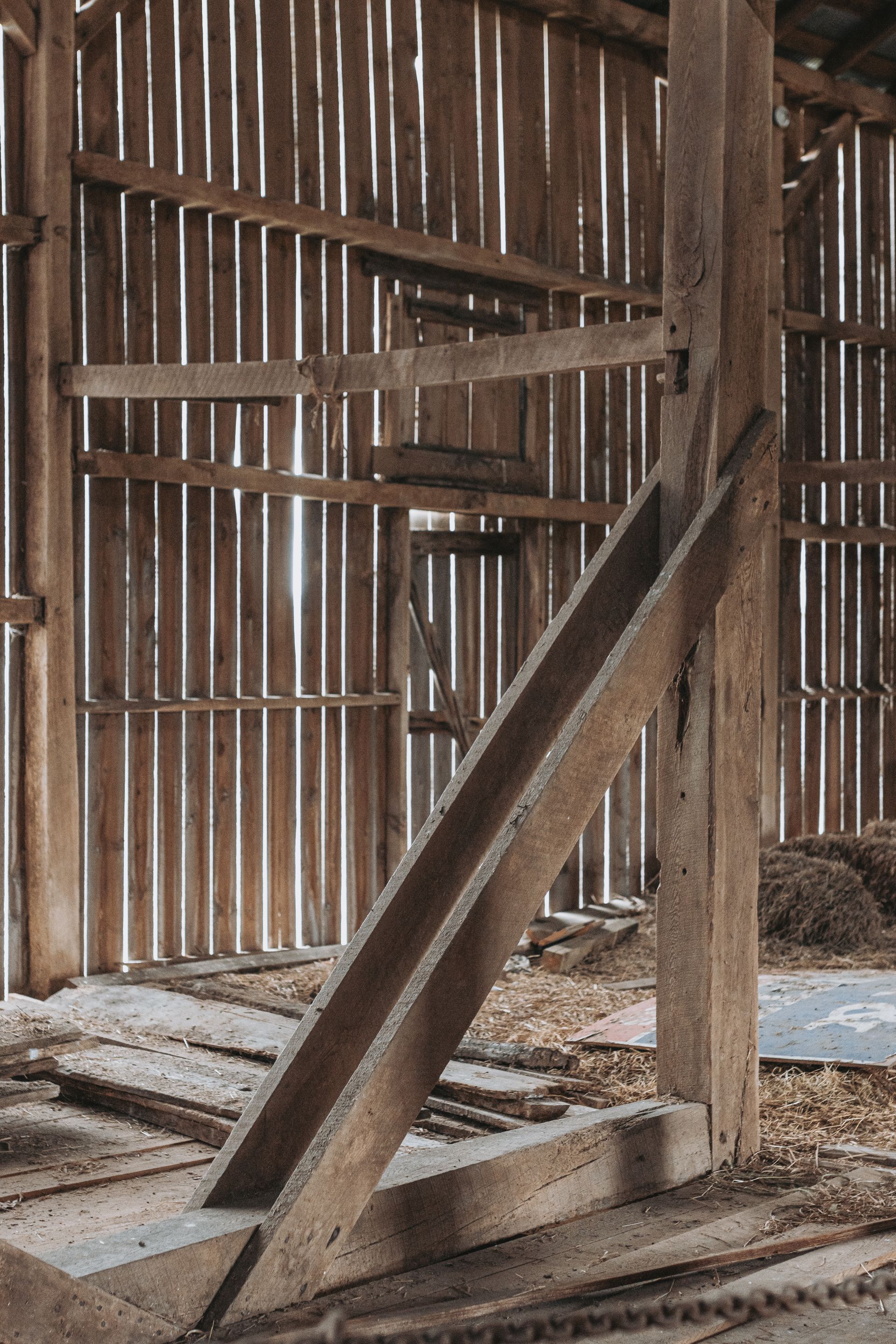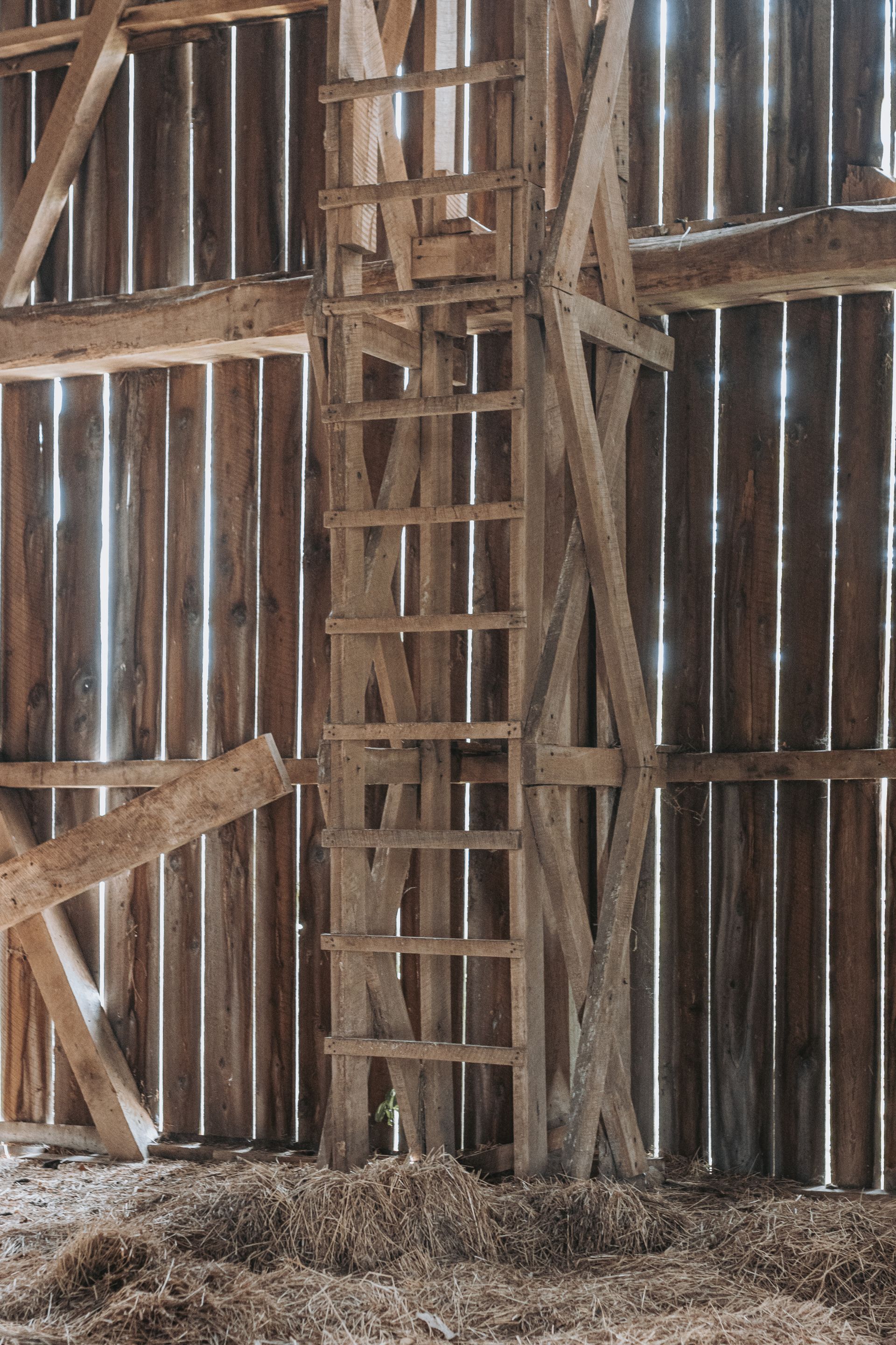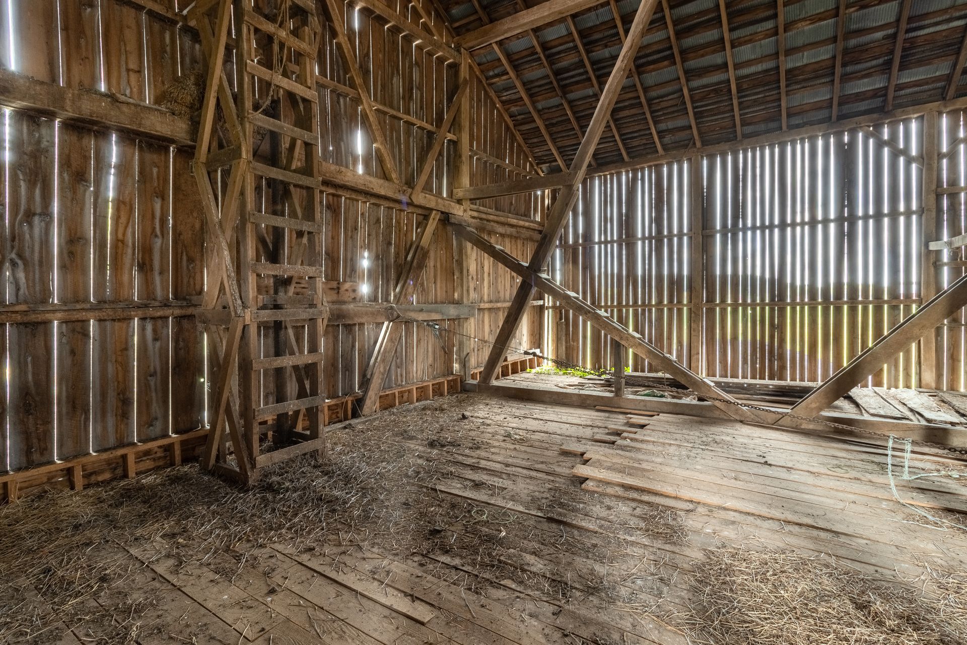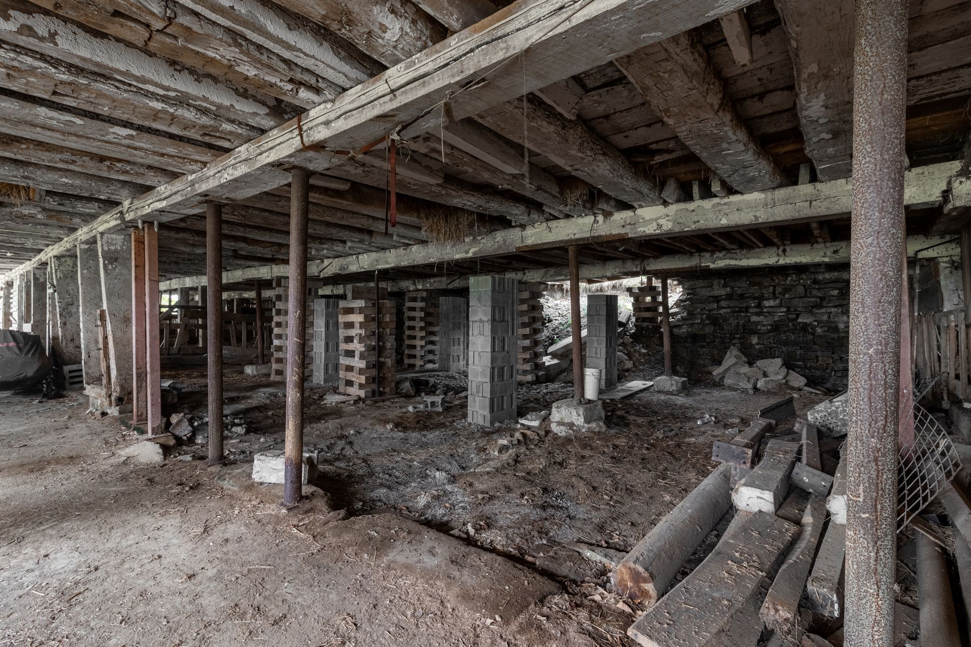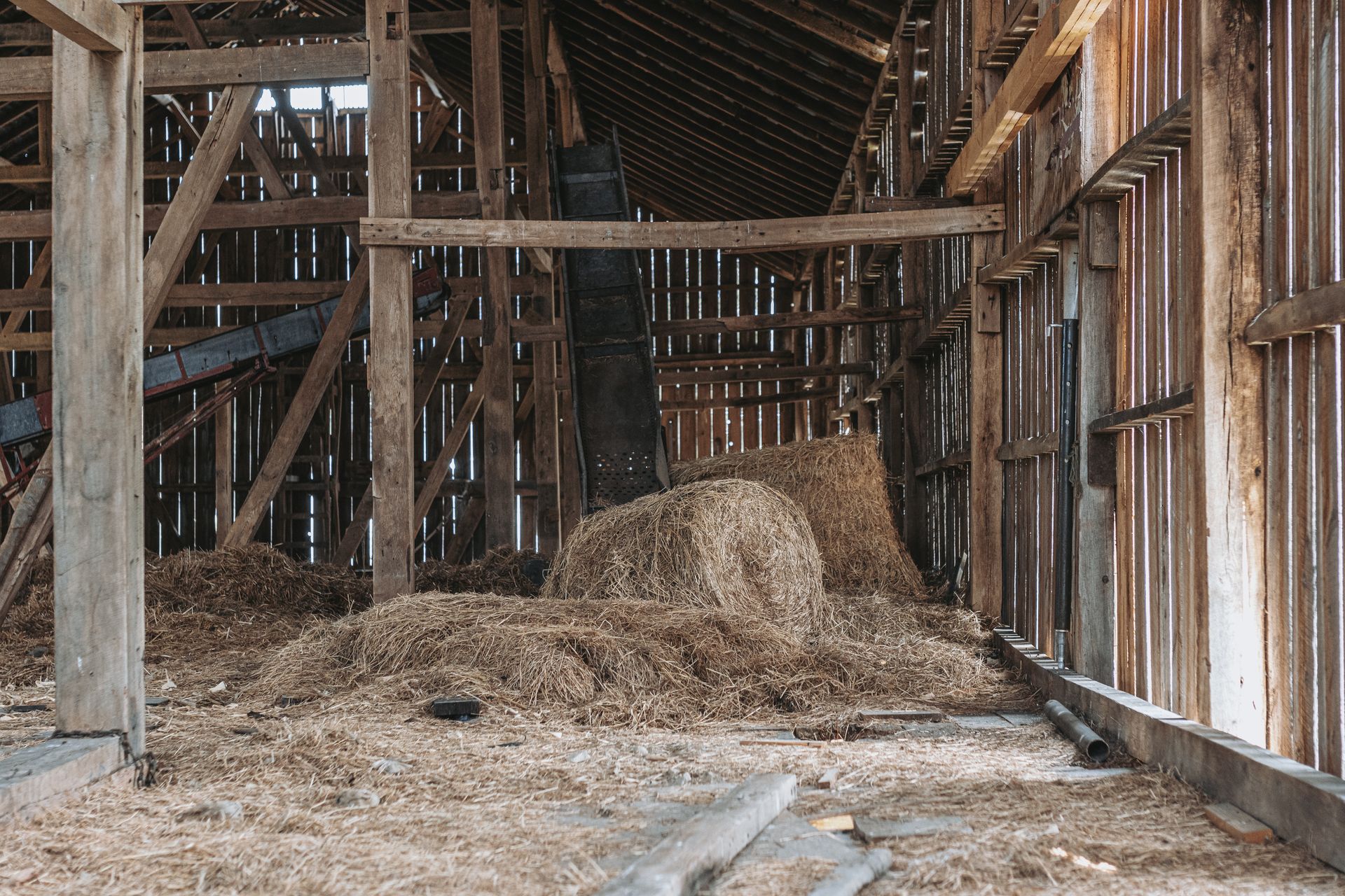 Long beautiful frame. 11-foot off bays make a monitor barn an option. Large wind braces.