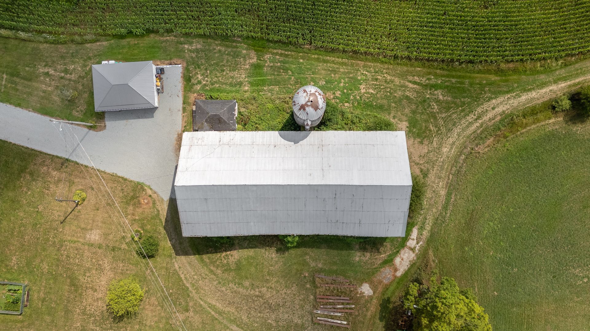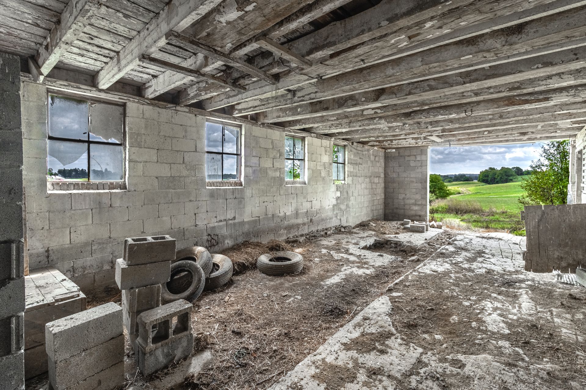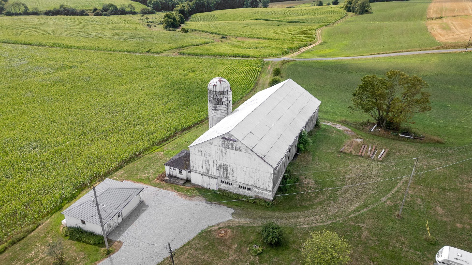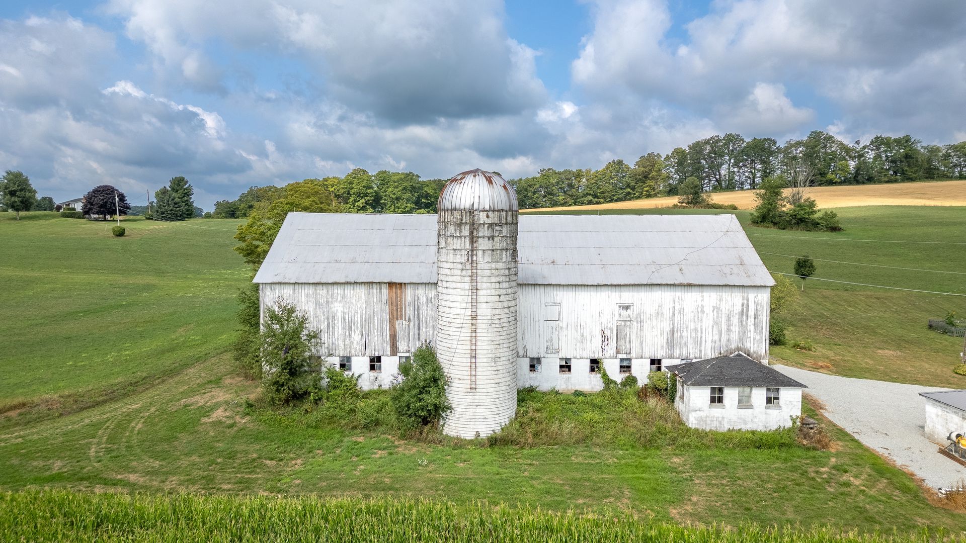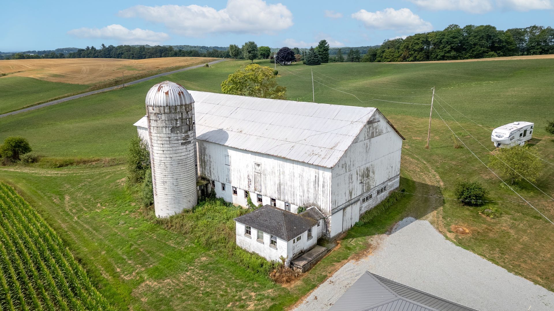 Long beautiful frame. 11-foot off bays make a monitor barn an option. Large wind braces.
