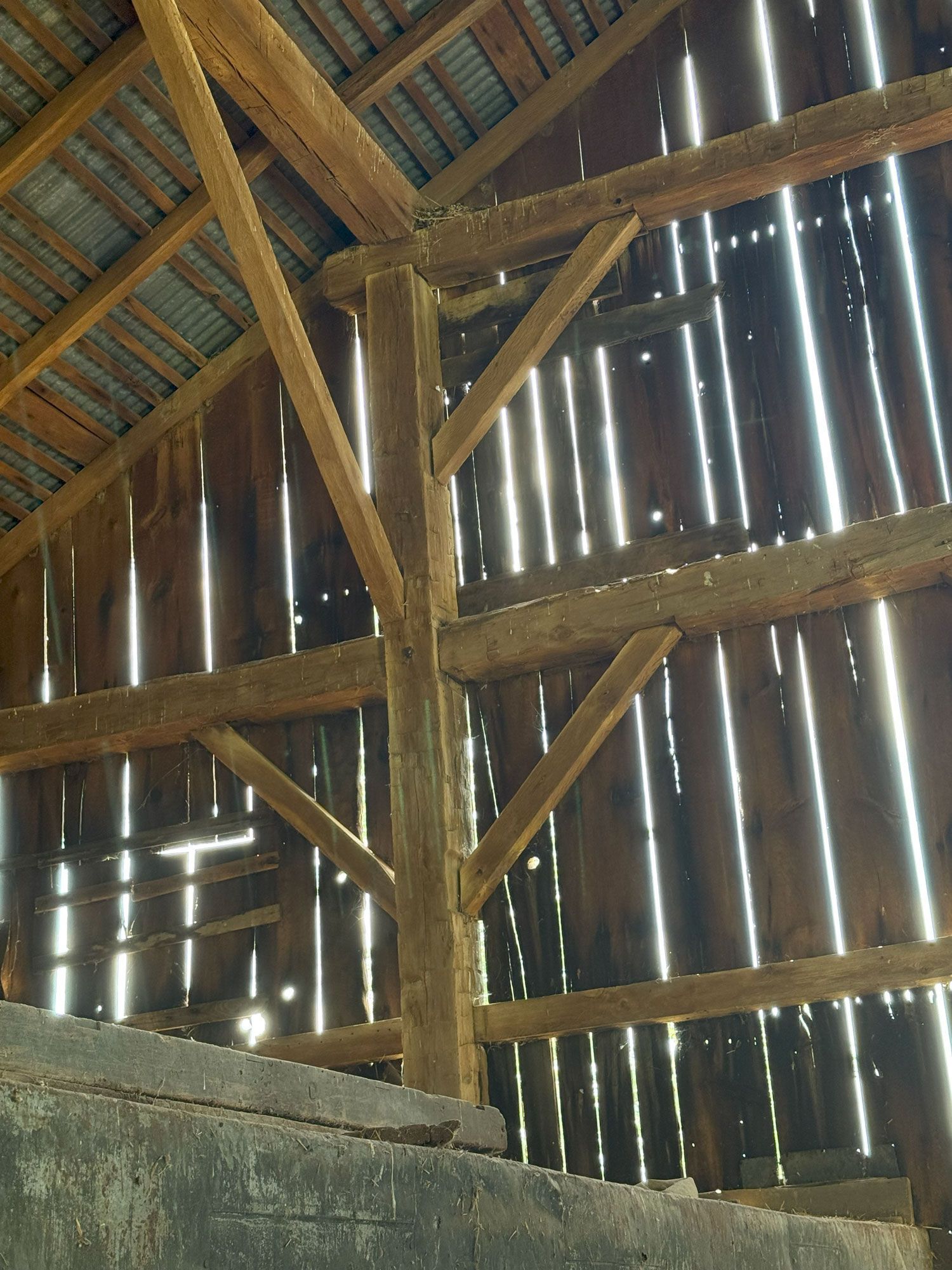 Holy cow what a beautiful barn frame. This frame has all the traditional look and feel a person could want. It is also beautifully engineered for any heavy snow load if a northern location is in the mix. Double ties accent the frame system and make for great second floor or loft opportunities. Still a working barn, it will be cleaned out and dismantled late 2025.