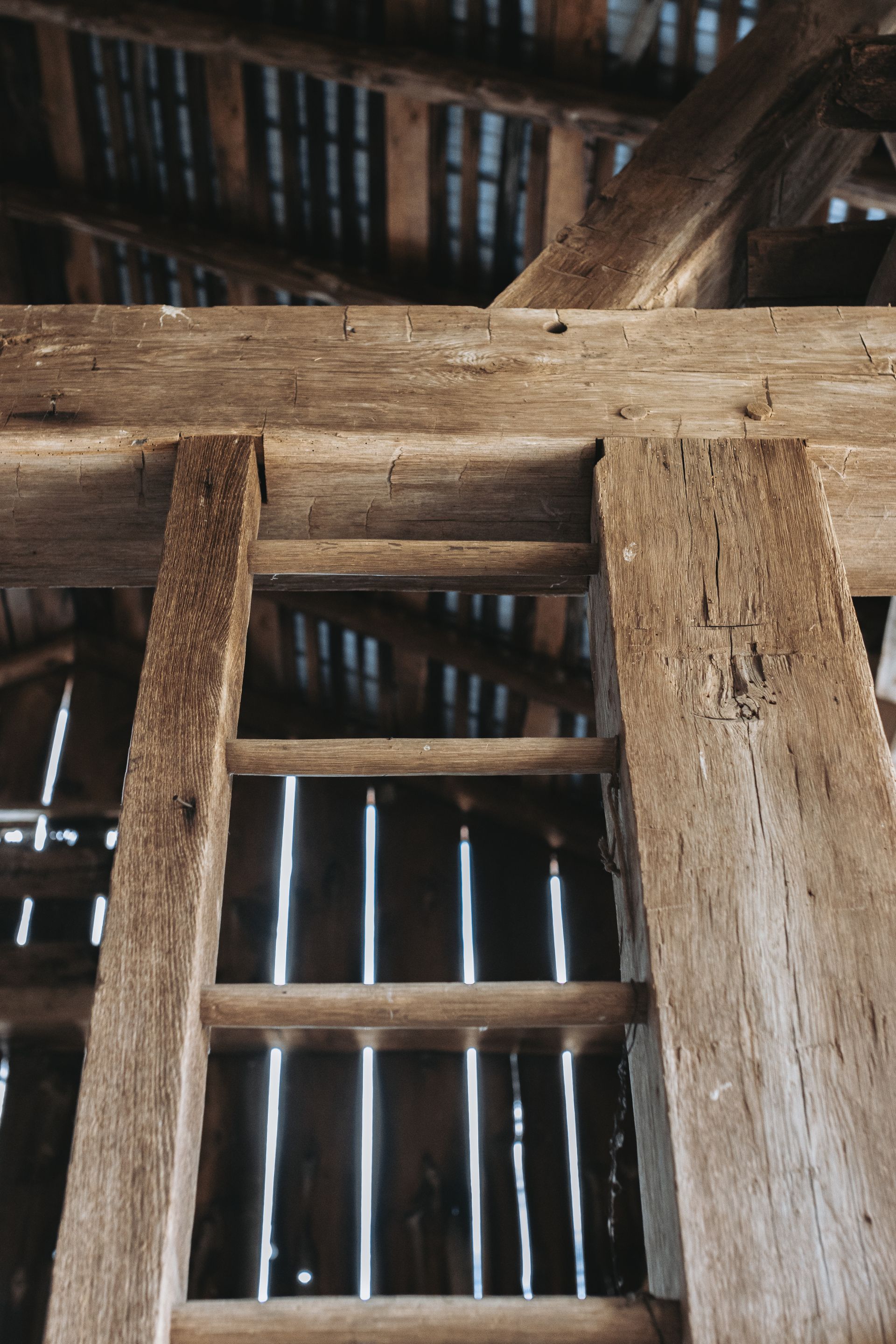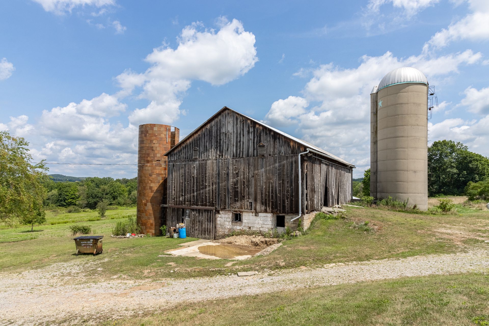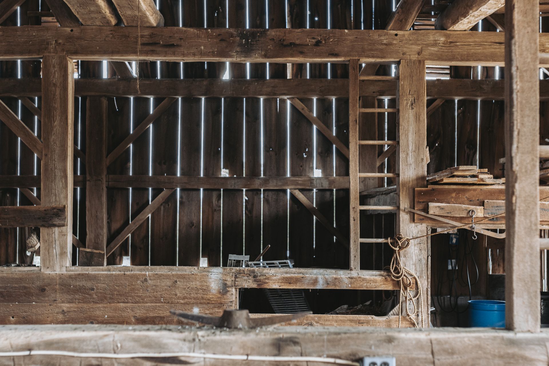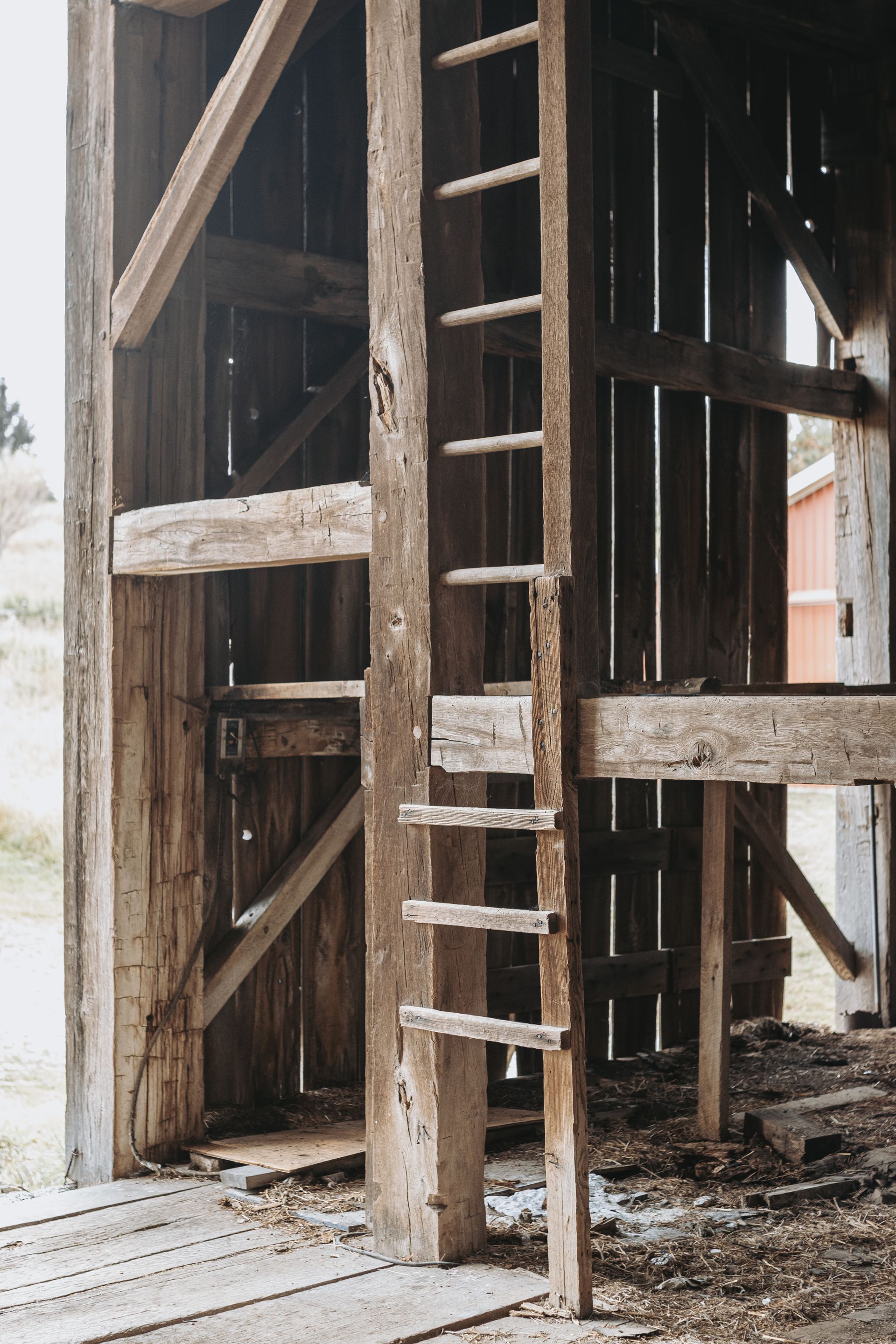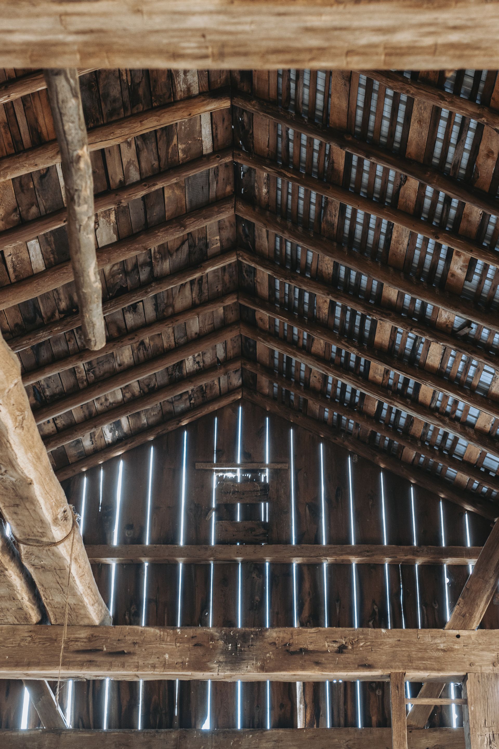 The barn's frame is made of hand-hewn timber meticulously joined to form a structure of undeniable strength and character. Its 5/4/variable bent/bay spacing reveals a design optimized for functionality and durability. While currently a single-story building, the barn's soaring roofline hints at the potential for a transformative loft conversion.