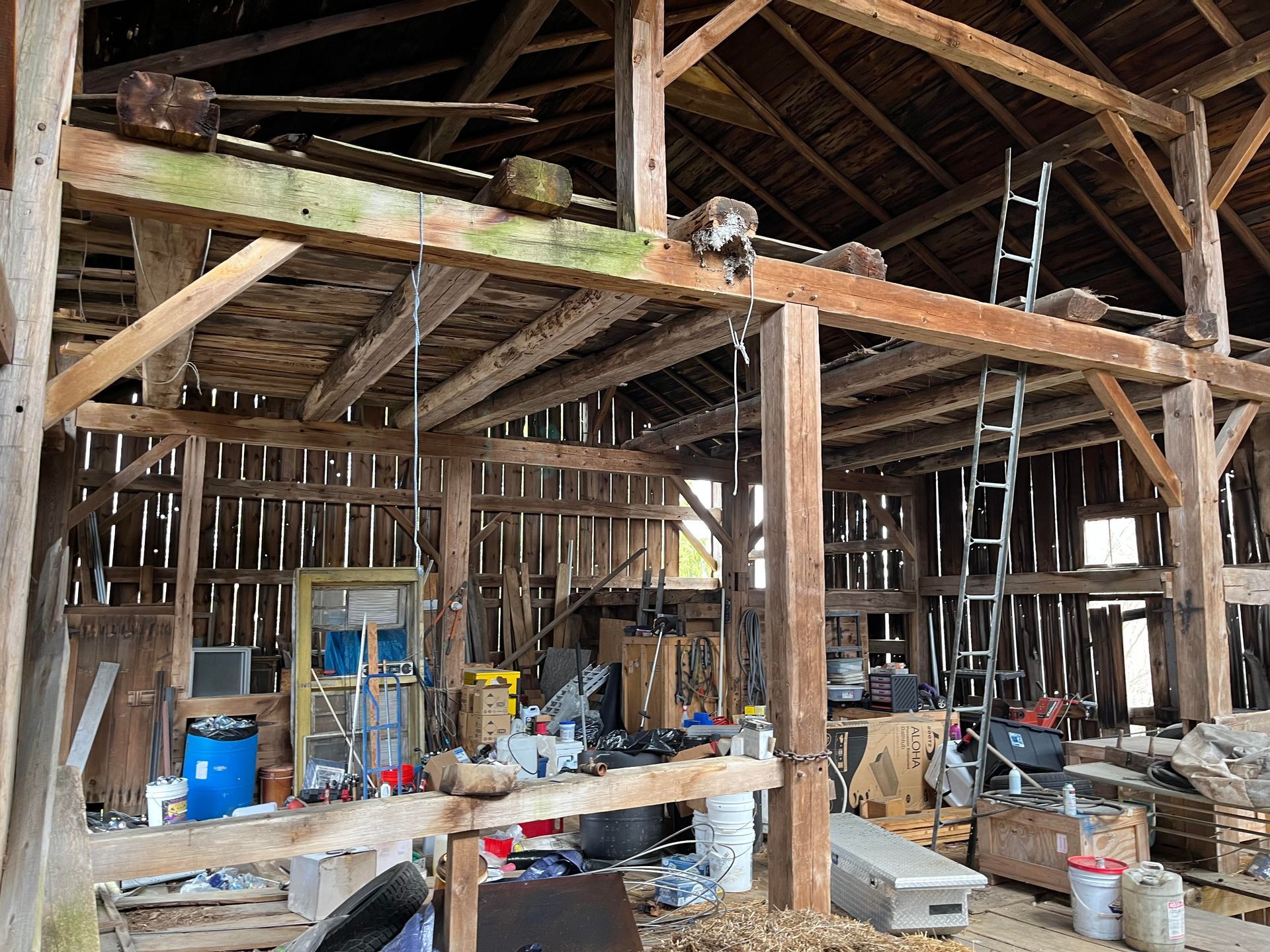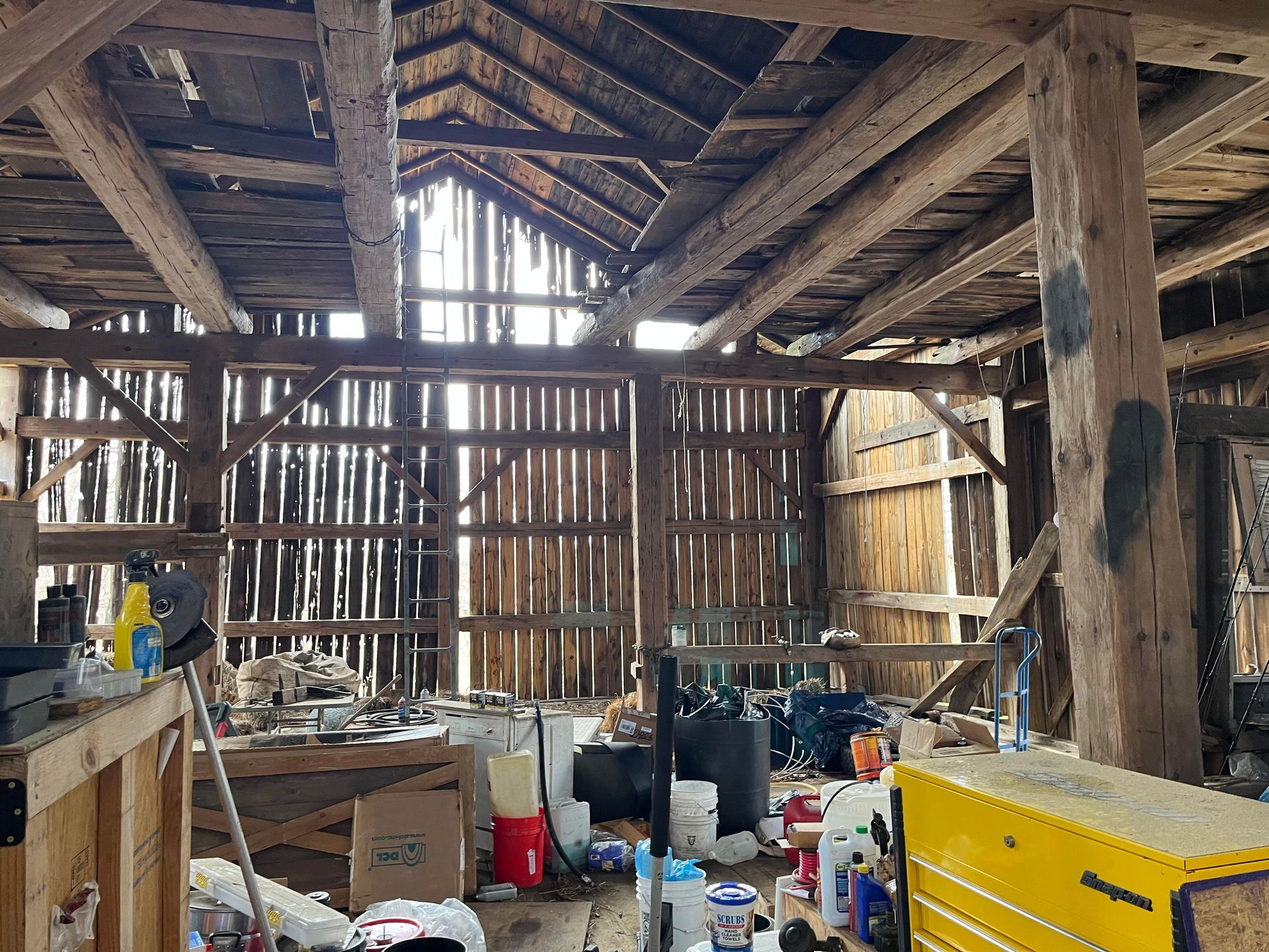 Currently in the design phase, this expansive Pennsylvania timber frame is bound for Wisconsin to house a new family-owned distillery. The architectural plan is uniquely transparent, utilizing the original lower-level beams as a functional design element while omitting sections of the main floor to allow the distilling equipment to rise across two stories, showcasing the intersection of historic craft and modern industry.